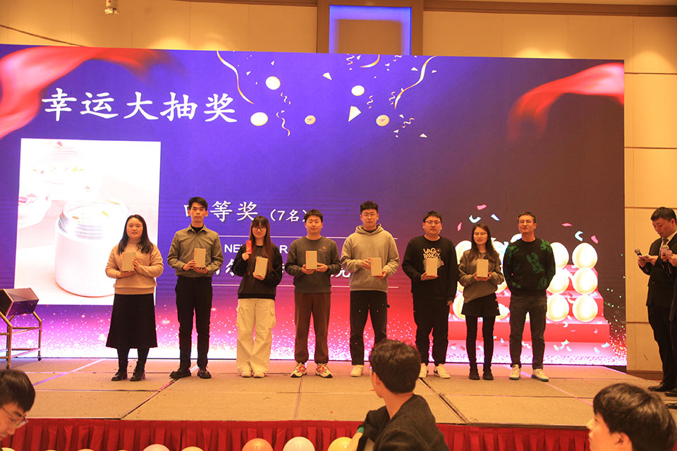 随着年会的热烈进行,最令人期待的抽奖环节终于到来!在这个环节,幸运与惊喜交织,笑声与欢呼声此起彼伏,每个人都怀揣着激动与期待的心情,等待着属 于自己的那份幸运降临。